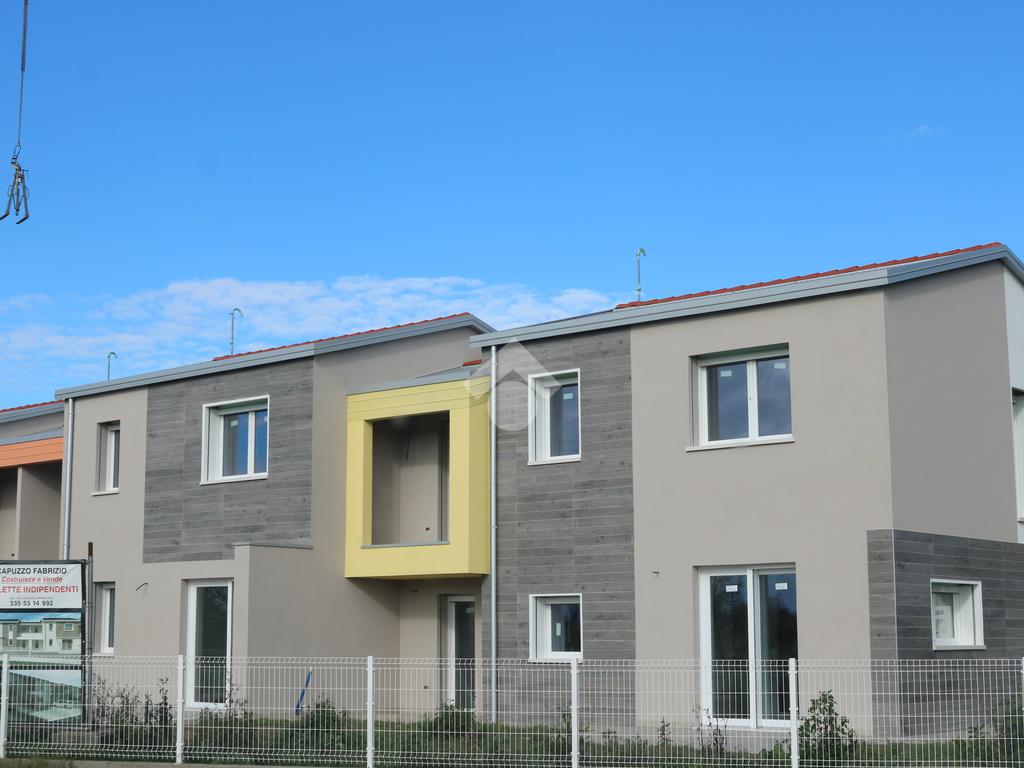 Porzione centrale di trifamiliare di nuova costruzione. L'immobile si sviluppa su più livelli, al suo interno troverete spazi ben distribuiti, tra cui tre camere da letto che garantiscono comfort e privacy. Gli spazi sono progettati per essere luminosi, grazie alla presenza di due balconi che permettono un'ottima esposizione alla luce naturale. La proprietà include due bagni moderni e un' ulteriore camera versatile, ideale per studio o hobby. Completano l'offerta un box auto e un posto auto esterno, assicurando comodità per il parcheggio. Il giardino privato rappresenta un'oasi di tranquillità, perfetto per momenti di relax all'aperto. Questa soluzione abitativa si distingue per la sua posizione centrale e la qualità degli spazi interni ed esterni.