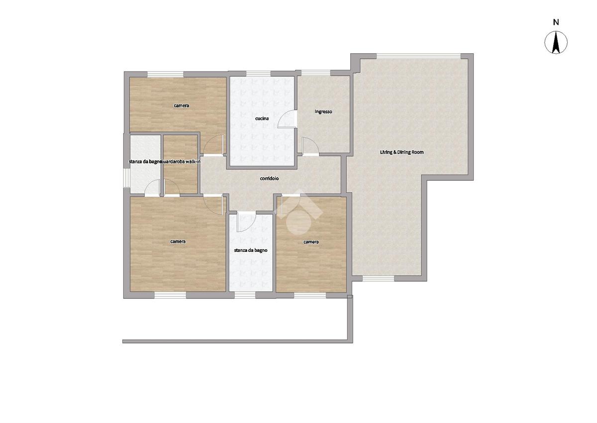 L'abitazione si compone di un ampio soggiorno di 45 metri quadri, separato dalla pratica cucina abitabile. Attraverso il disimpegno si accede poi ad un ampio e attrezzato corridoio con armadiature a muro e quindi alla prima camera da letto, il bagno finestrato, dotato di vasca idromassaggio jacuzzi, e la camera padronale con bagno privato e cabina armadio. A completare la zona notte troviamo la terza camera.