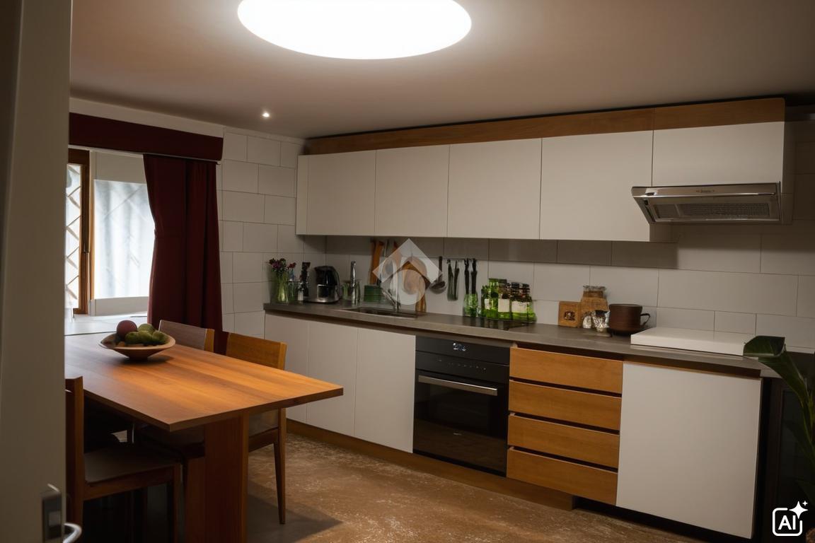 L'abitazione si sviluppa su due piani, ed è quindi composta da un ingresso, un ampio ripostiglio, una stanza dedicata alla lavanderia, un primo bagno ed una cantina.