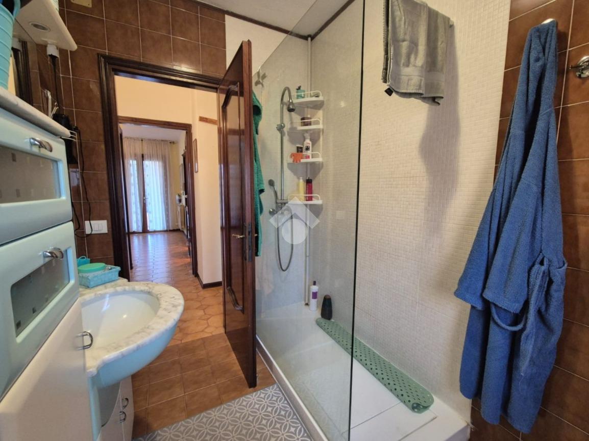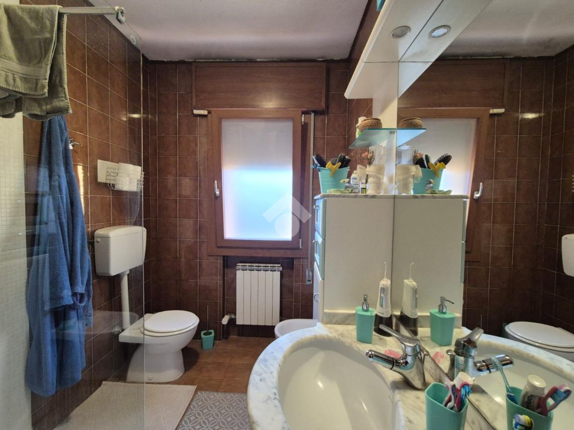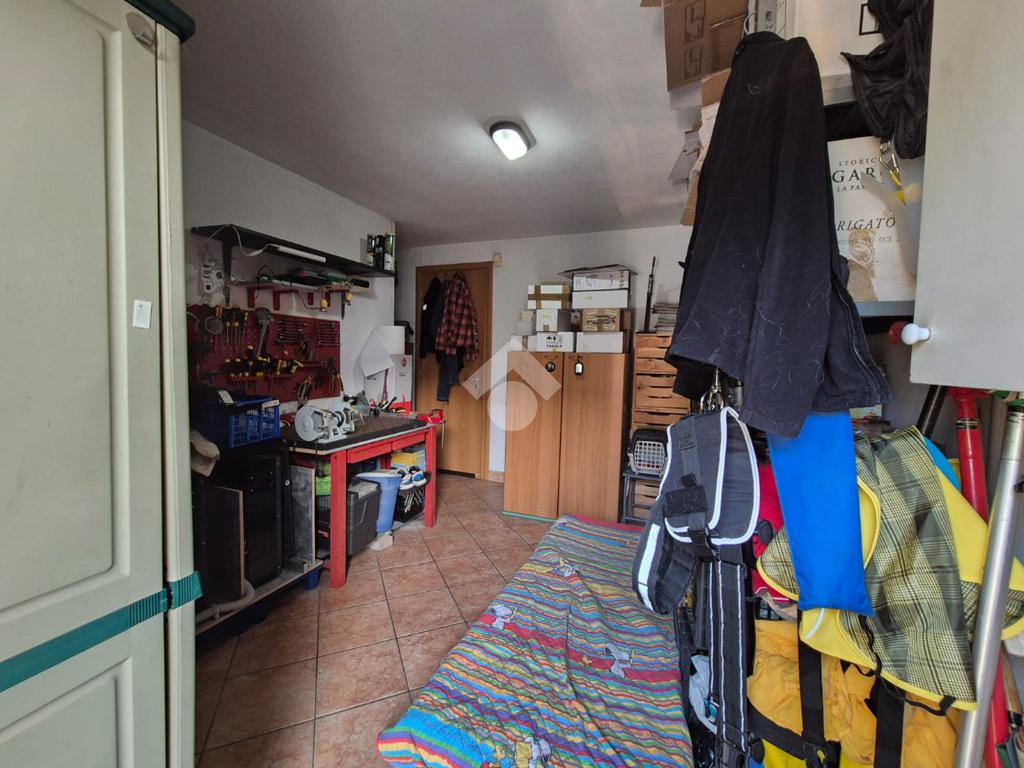 L'ingresso all'abitazione è duplice, sia con accesso pedonale che con carraio elettrico. Il piano terra si compone di cucina abitabile, studio, taverna, lavanderia, bagno e ripostiglio. Al piano superiore si trova invece un soggiorno, tre camere da letto, un secondo bagno, e una quarta camera da letto con la predisposizione per collocarvi una seconda cucina abitabile. A completare il piano superiore vi sono tre poggioli di cui due con tenda parasole elettrica appena sostituita.