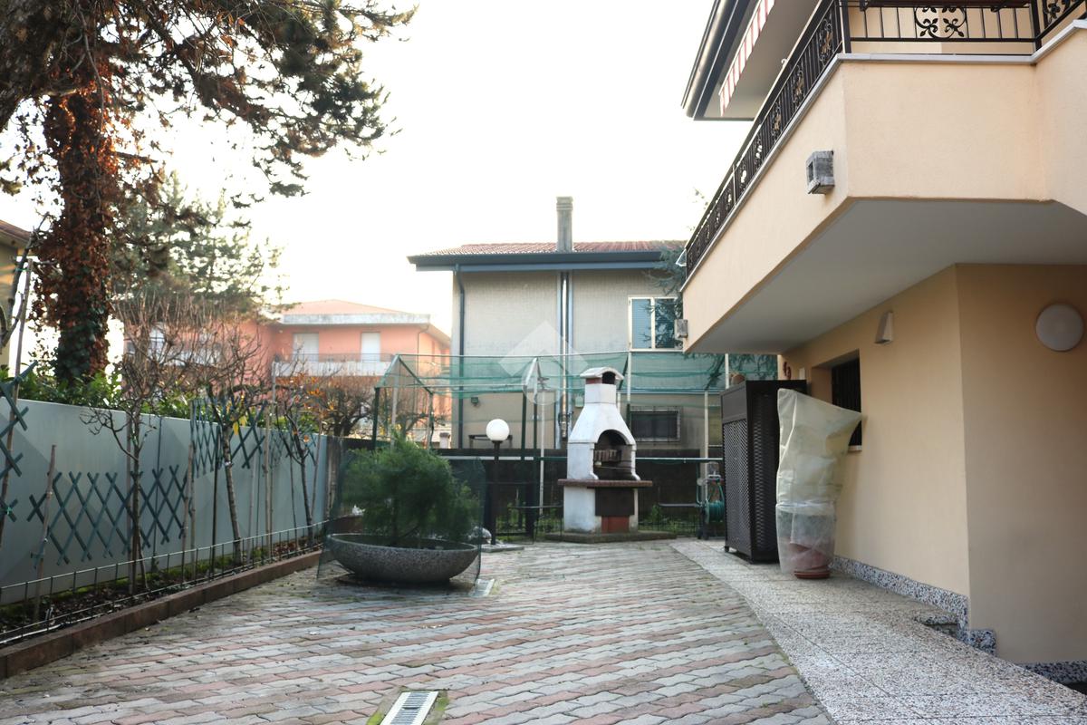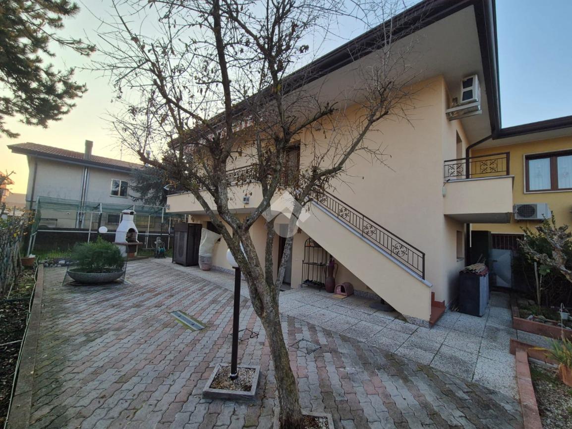 Suddivisa in 9 locali, con 2 bagni ( di cui uno con box doccia doppio), garage con accesso esterno ed ingresso interno dall'abitazione, 2 posti auto scoperti, sottoscala interno, sottotetto coibentato, non abitabile ma accessibile come locale di sgombero, scoperto privato di 200 mq, parzialmente pavimentato, con gazebo, angolo barbeque, orto con impianto di irrigazione e alberi da frutto.