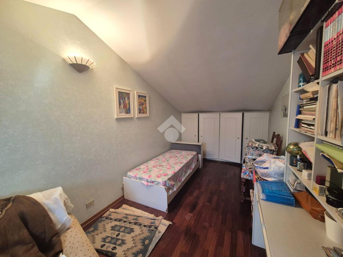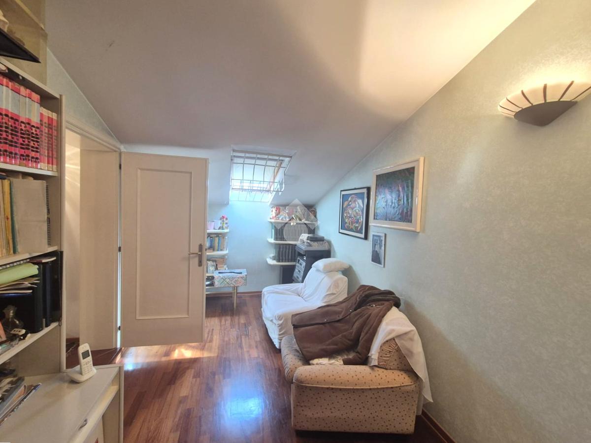 Proponiamo in vendita una porzione di bifamiliare signorile, caratterizzata da finiture di pregio e un ampio giardino privato. L'immobile, costruito nel 1986, si sviluppa su più livelli. Al suo interno, la casa offre sei locali ben distribuiti, tra cui tre camere da letto e due ulteriori stanze versatili, ideali per studio o hobby. La presenza di tre bagni garantisce comfort e praticità per tutta la famiglia. La zona giorno è particolarmente luminosa, grazie alle ampie finestre che si affacciano sul giardino. Un terrazzo offre uno spazio esterno aggiuntivo per momenti di relax. Completa la proprietà un box auto. Situata in una strada ad accesso privato, questa abitazione offre tranquillità e riservatezza, pur essendo vicina ai principali servizi.